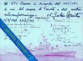 Lo stesso spirito di intraprendenza e rinnovamento stava coinvolgendo la nostra Marina Militare. Anche se negli anni ’60 la nave ammiraglia della flotta era ancora l’incrociatore Garibaldi, che aveva combattuto nella II Guerra Mondiale, essa era stata interamente ricostruita, riallestita e riarmata, anche con missili di difesa aerea ceduti dagli USA (solo a noi, in quegli anni), diventando una delle unità di maggior spicco del Mediterraneo, con il più potente radar di scoperta aerea mai imbarcato e con un inedito sistema di tubi di lancio di concezione italiana per missili balistici. Nello stesso periodo era già avvenuta l’entrata in servizio delle fregate classe Bergamini, che furono le prime unità portaelicotteri al mondo, seguite dalle prime navi missilistiche di difesa aerea progettate e costruite in Italia nel dopoguerra (cacciatorpediniere Impavido ed Intrepido; poi gli incrociatori Duilio e Doria, e infine il Vittorio Veneto); nel contempo venivano messi in cantiere gli innovativi primi due sommergibili anti-sommergibili della classe Toti, mentre un decennio dopo venivano impostati gli altrettanto innovativi aliscafi lanciamissili della classe Nibbio.